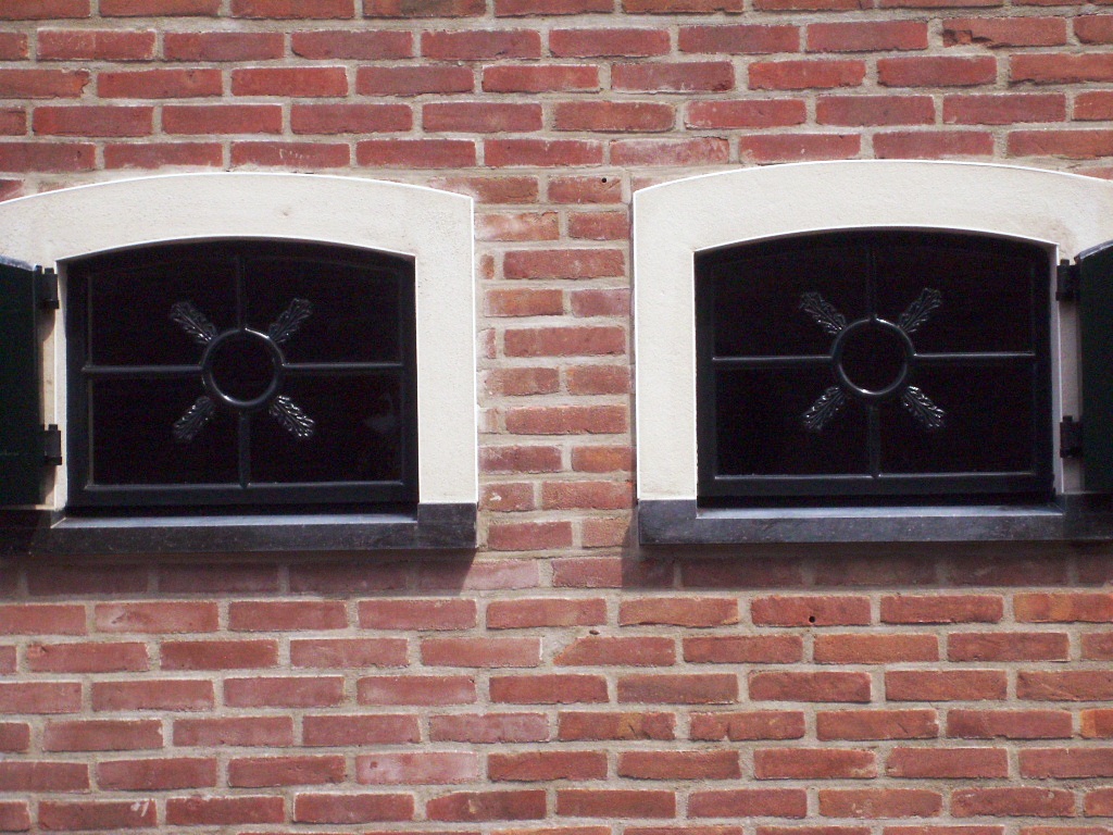 De schone eenvoud van authentieke gietijzeren ramen. De gietijzeren ramen geven op een eenvoudige manier een sfeervol aanzicht.